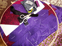 Sorry het is wat ééntonig, maar ik ben dapper bezig met om mijn sampler te quilten, het scheelt ik doe het niet alleen.Volgens mij heeft Kitty een liefdesverhouding met de sprei, want hij is er niet weg te slaan.( het nadeel dat Kitty op de sprei ligt,zie