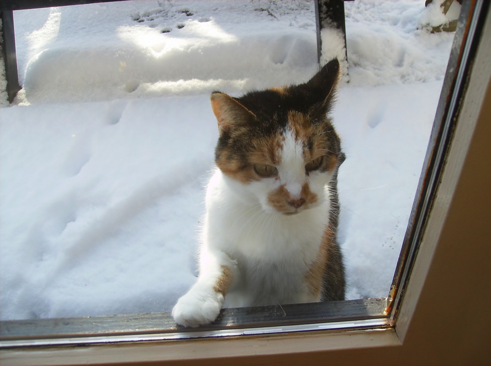 4. Goed zo Kitty, binnen is beter dan buiten, vind ik ook! En dan met je blote pootjes in de sneeuw, brrr. Kruip maar lekker op schoot bij het vrouwtje, dat is lekker warm! Fijn weekend, groetjes