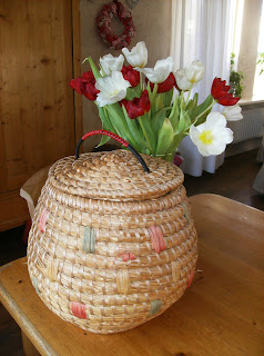 Vandaag naar de supervlooienmarkt in Leeuwarden geweest met manlief(Lig nu wel even voor pampus hoor!) en kwam deze leuke mand voorbij....