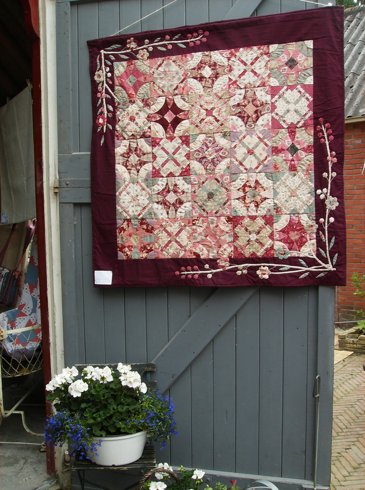 Juist, de Japanse roosjesquilt, en toen ik het zo op het kaartje zag dacht ik: Eigenlijk klopt de naam niet....
