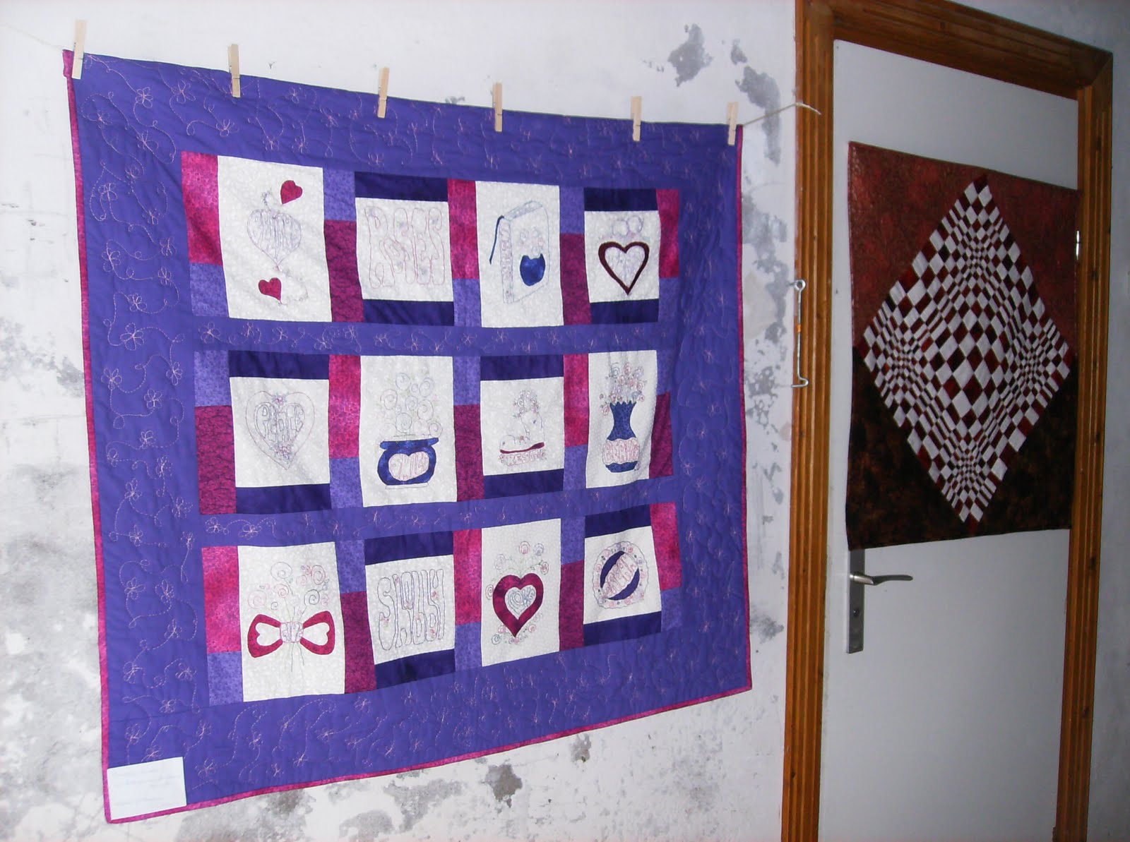 Ook hing mijn Shabby-rosequilt er,(de paarse), die daar naast hangt is niet van mij, maar ik vind hem wel heel erg leuk..
