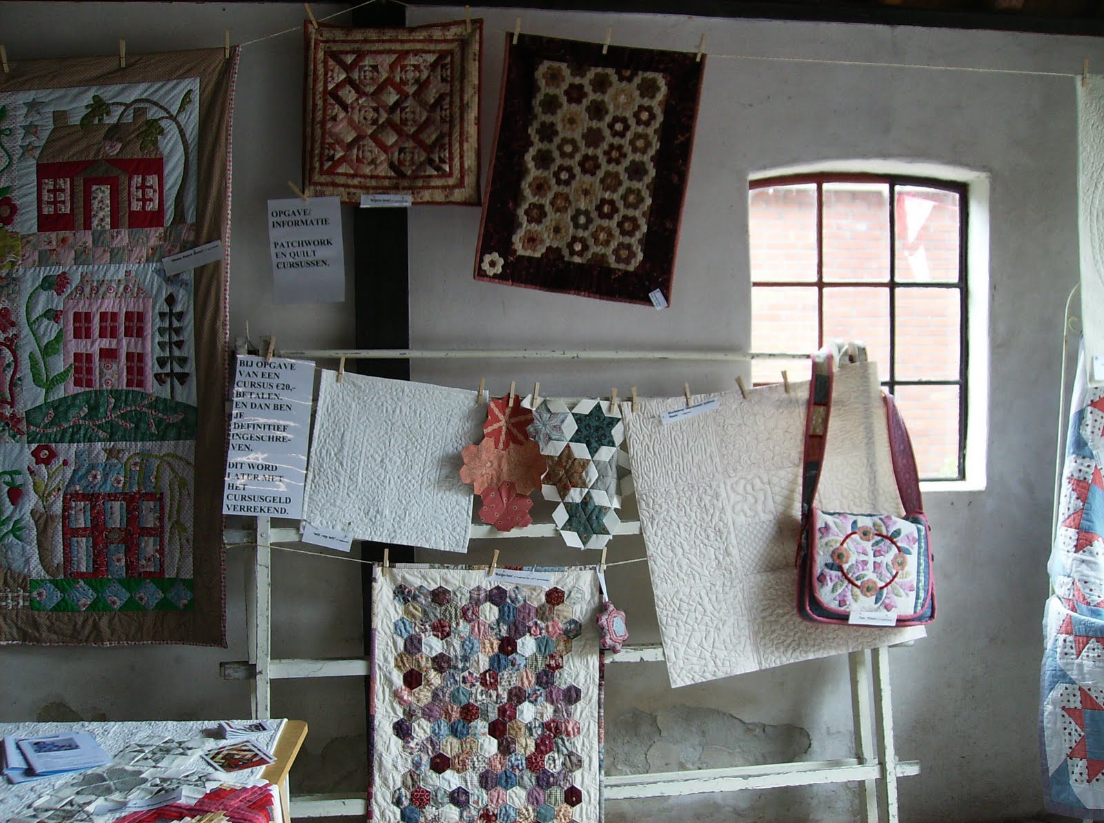 dat kan niet anders dan genieten zijn, die prachtige quilts van eigen makelij daar te zien hangen