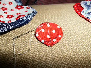 Nou zal het  vertellen, ik teken de mal om op de goede kant van de stof(met de blauwe stift), en vouw dan de naadtoeslag naar binnen met de vingers, en dan rijg ik  kleine steekjes  met heel fijn rijgdraad .