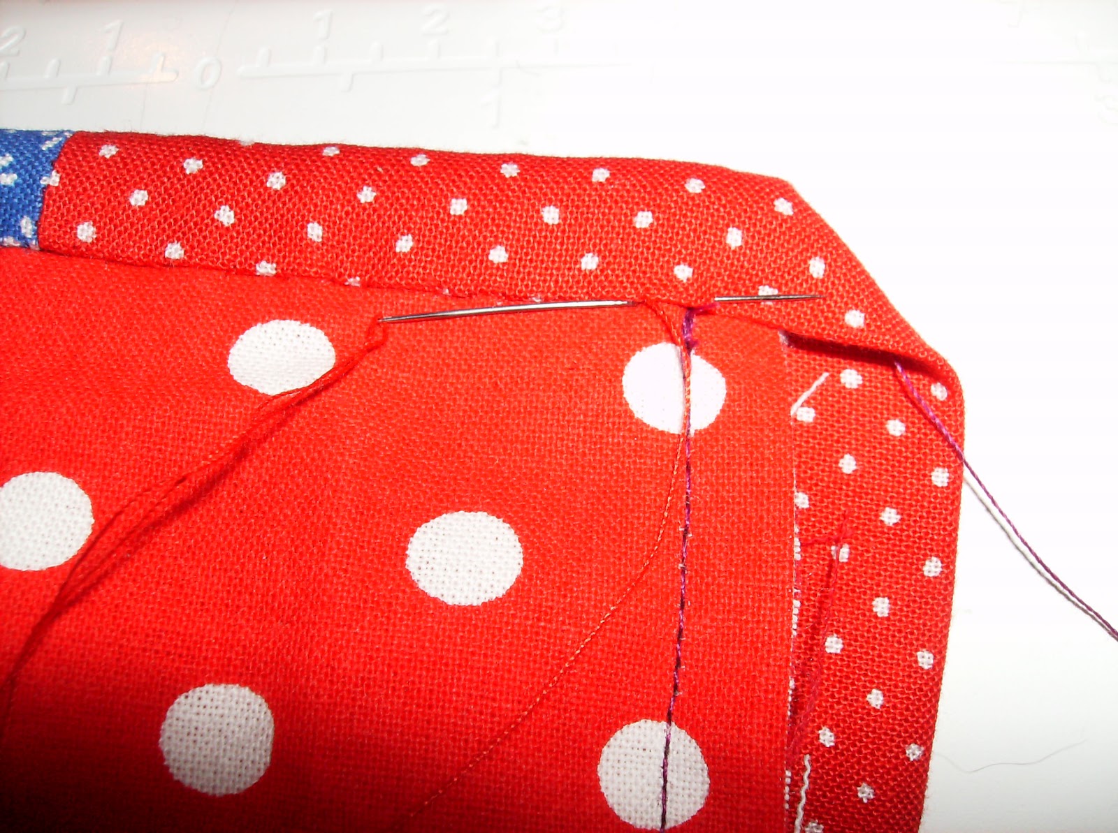 (Hier heb ik alleen het hoekje nog maar genaaid vandaar dat het er nog niet strak uitziet)