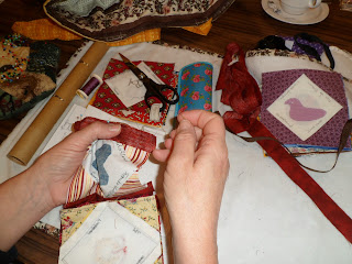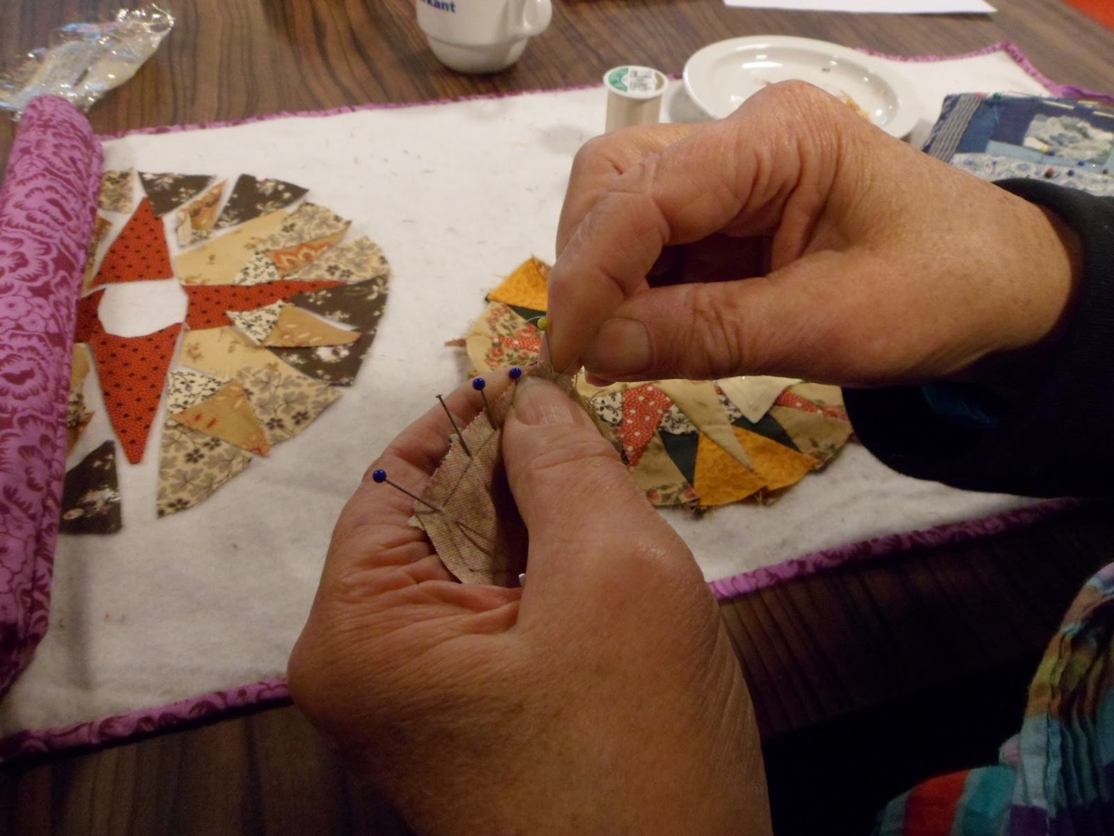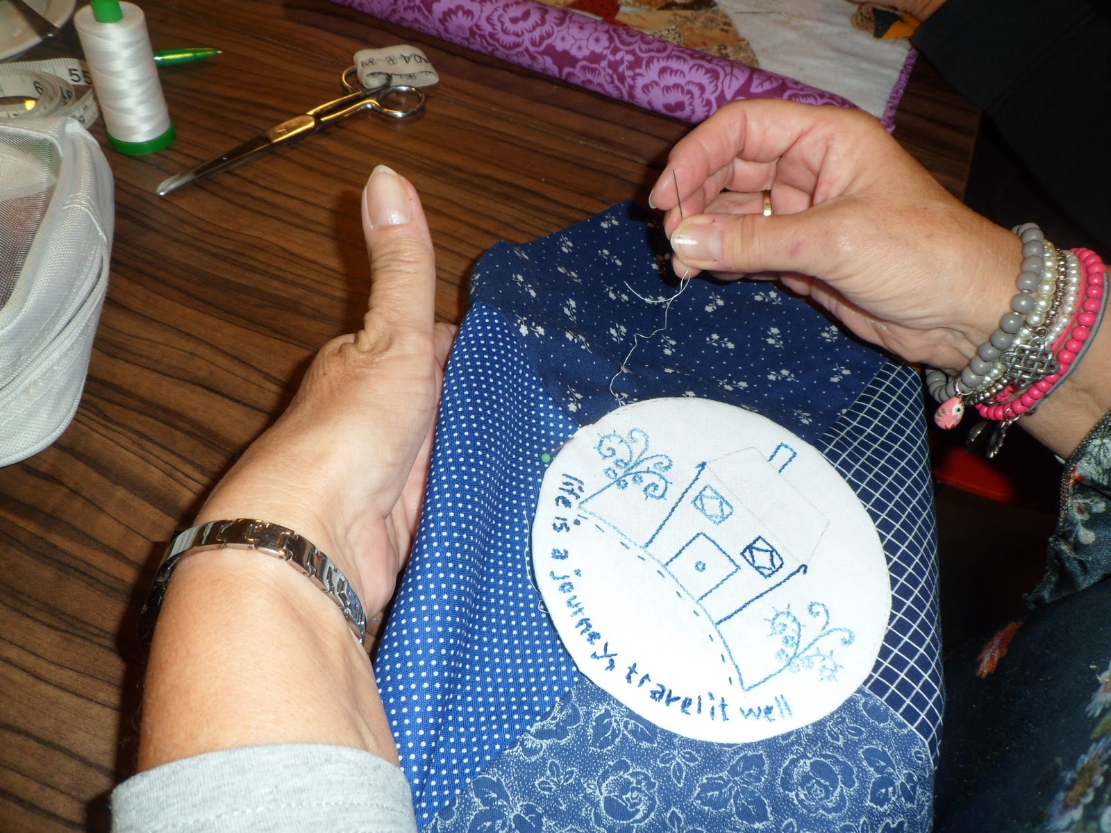 Vol trots liet Willy haar vingerhoedjesquilt zien, die ze in haar vakantie heeft gemaakt van restjes die ze her en der heeft gekregen.