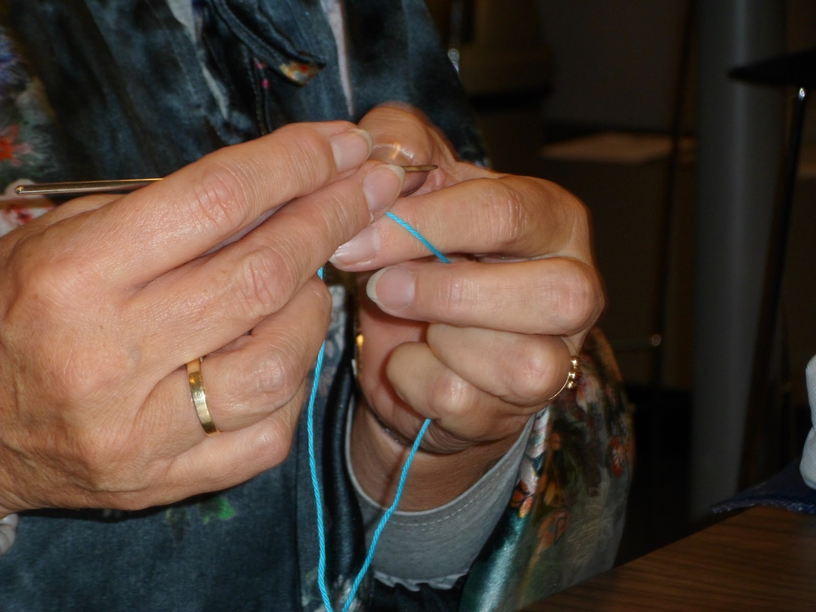 Ada vind stichery ook erg leuk, maar ze had ook nog een haakwerkje meegenomen..