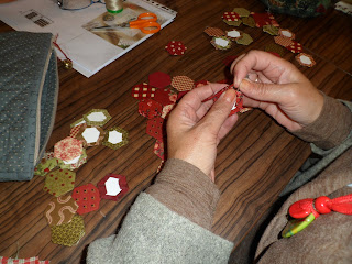 Oh voordat jullie gaan vragen waar ik mee bezig was, ik was bezig met de hexagonnetjes voor het beursje, en ik heb een mandje gemaakt...