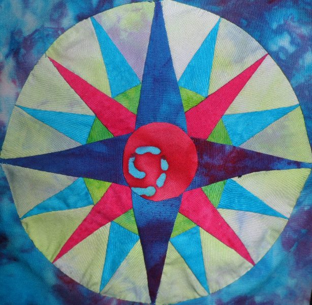 Alleen de fuchsia en turqoise stofjes zijn gekocht, de rest is zelf geverfd..